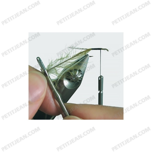 La pince à CDC MP Pliers a été spécialement conçue pour pouvoir travailler trois plumes de CDC en même temps. Le système breveté permet de ne pas endommager le rachis de la plume tout en l’enserrant avec fermeté.